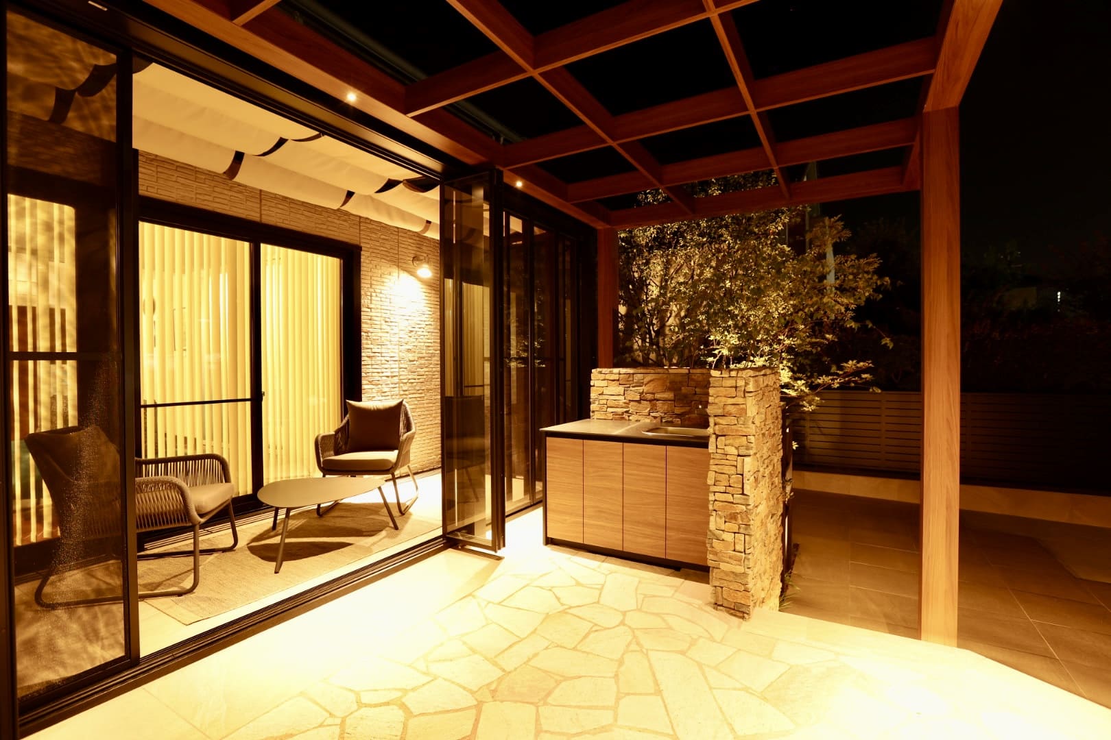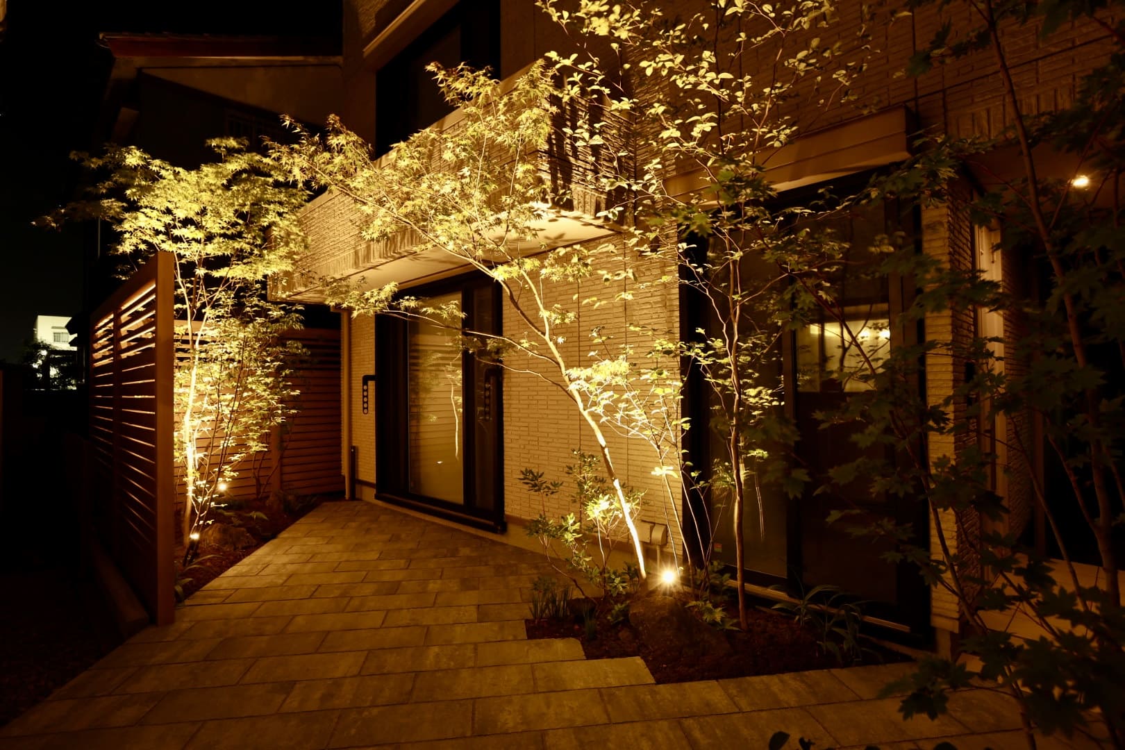 庭木の整理や植え替えに加え、夜の見え方まで考えた照明計画の見直しをすることで、外構の印象は大きく変わります。既存の庭木も活かしつつ、帰宅時には足元が安心で、窓からの眺めも心地よくなる“夜の光”を軸に、暮らしに合った緑と照明をご提案いたします。